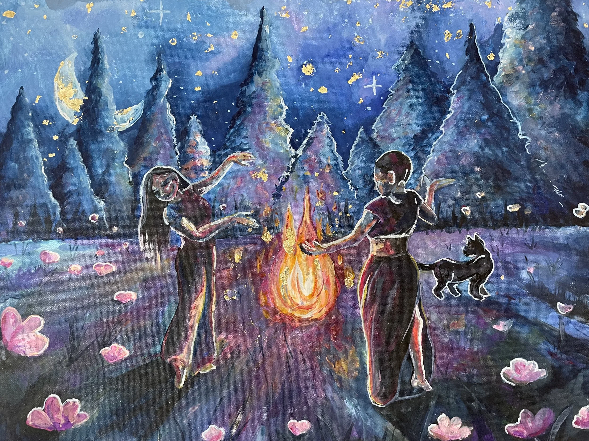 Original Painting 16x20” Gouache on Canvas with false gold foil and acrylic markers.