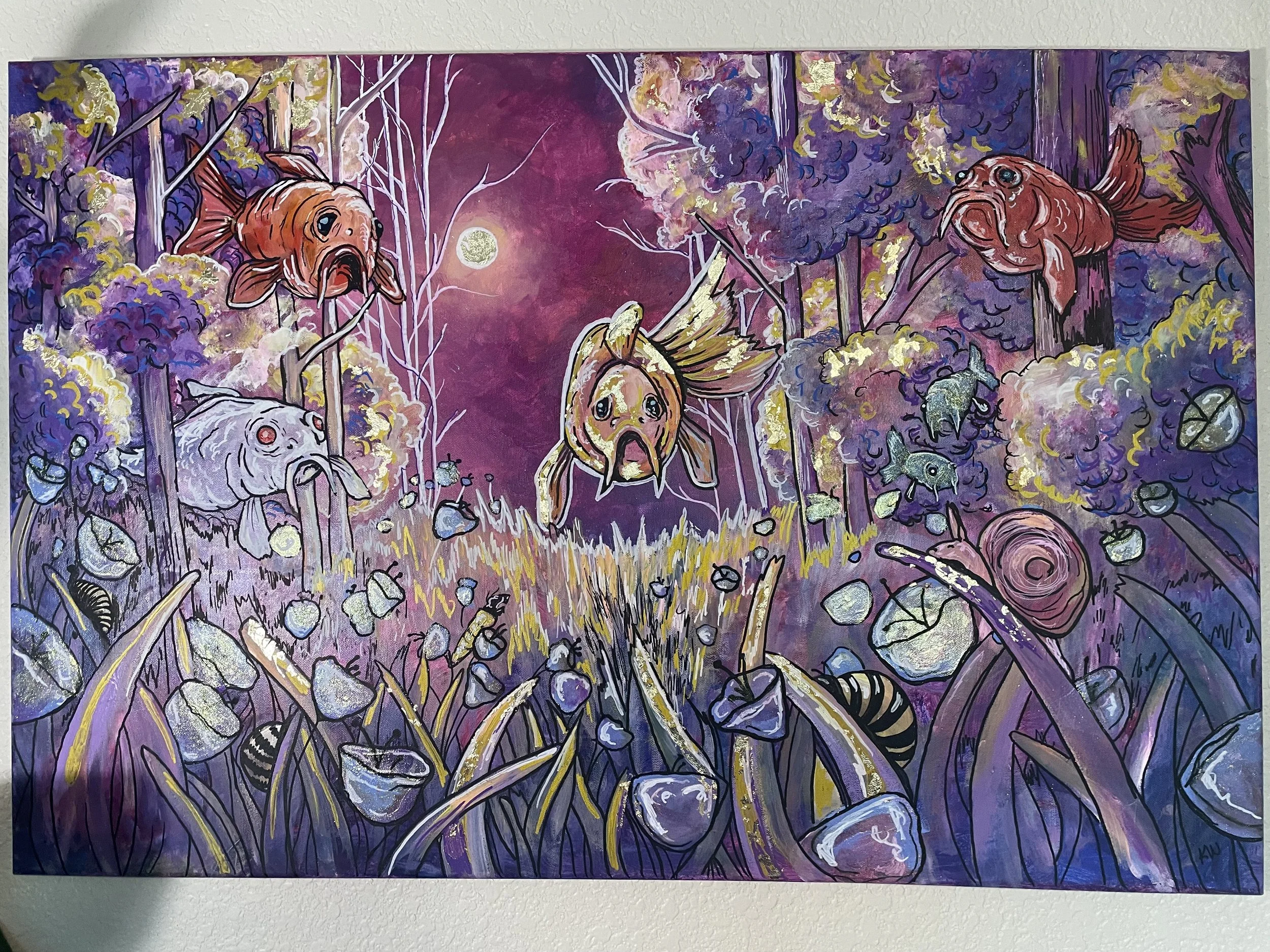 Original Painting 24”x36”, Gouache on Canvas with false gold foil and acrylic markers.