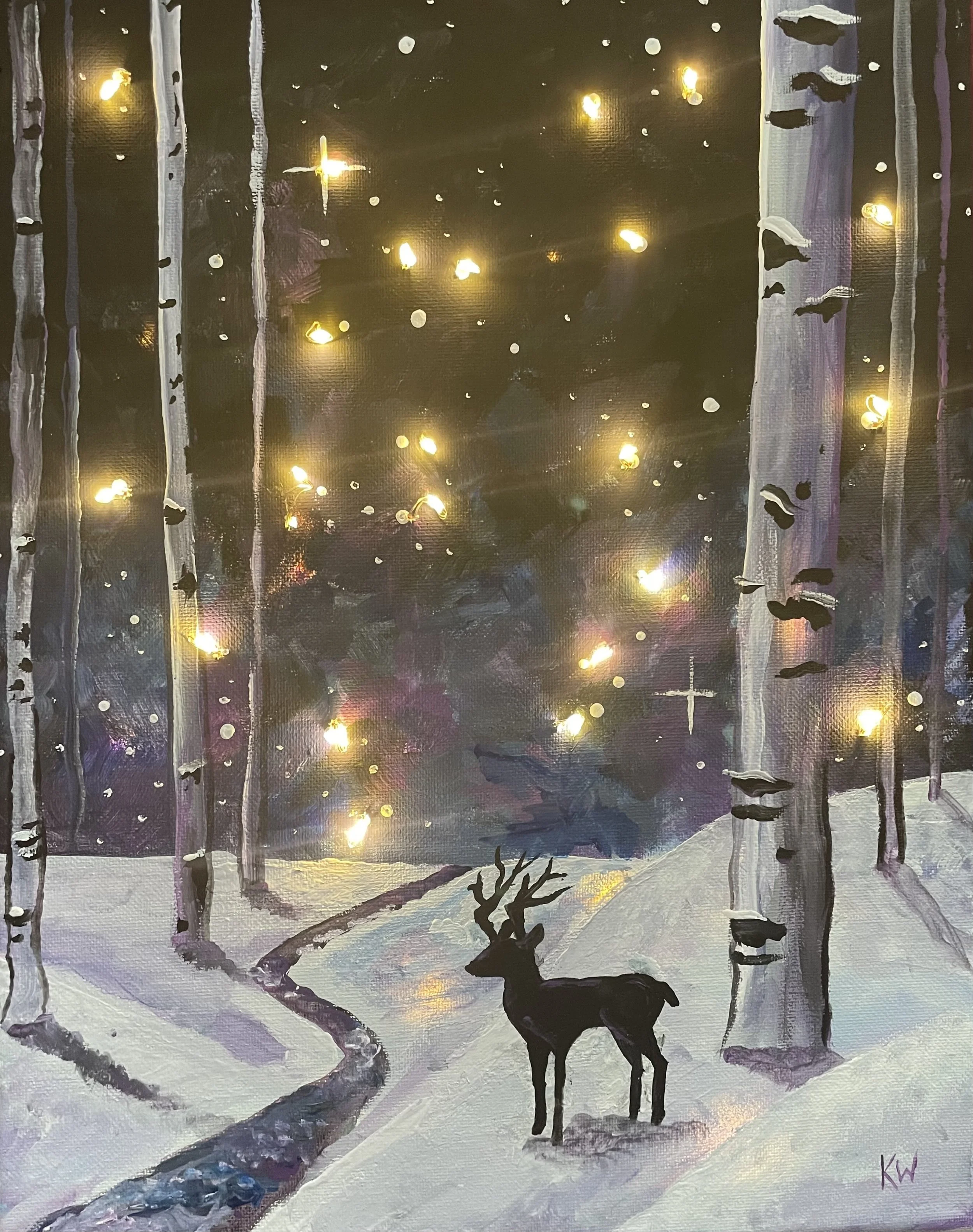 2-hour paint and sip holiday party with all supplies included and follow along instructions, including how to make your painting literally light up.